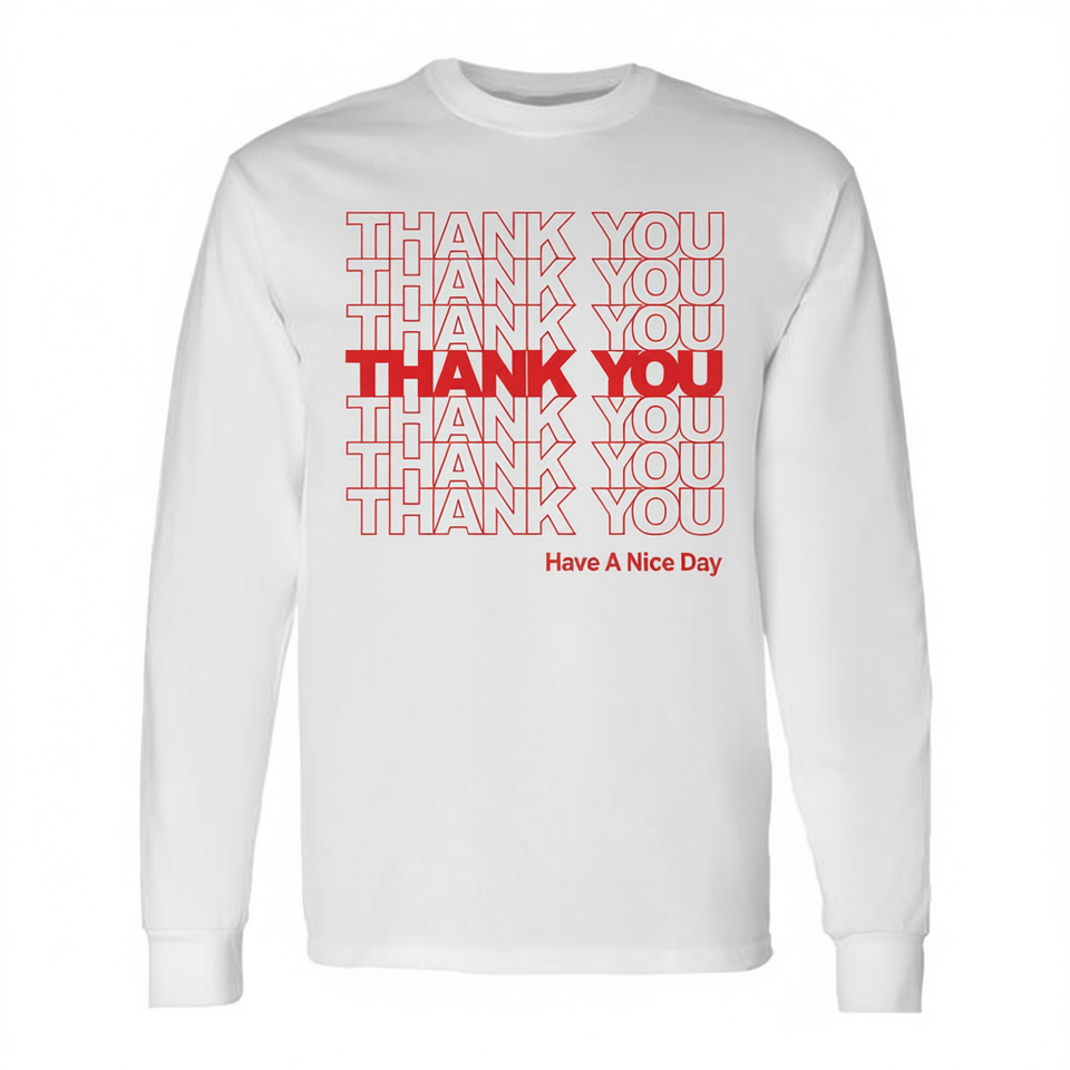 Maglietta Promozionale a Maniche Lunghe con Scritta 'Grazie, Buona Giornata'