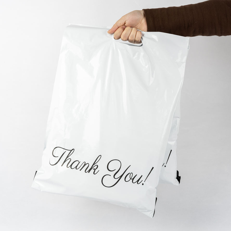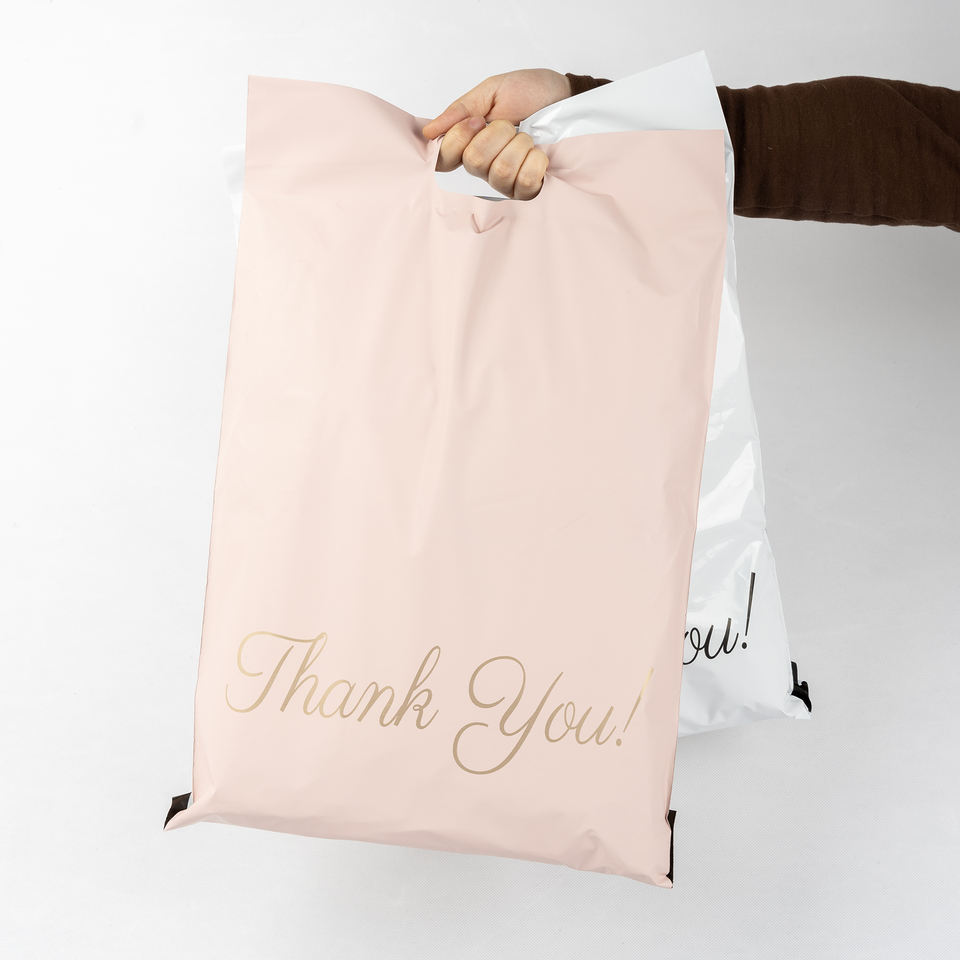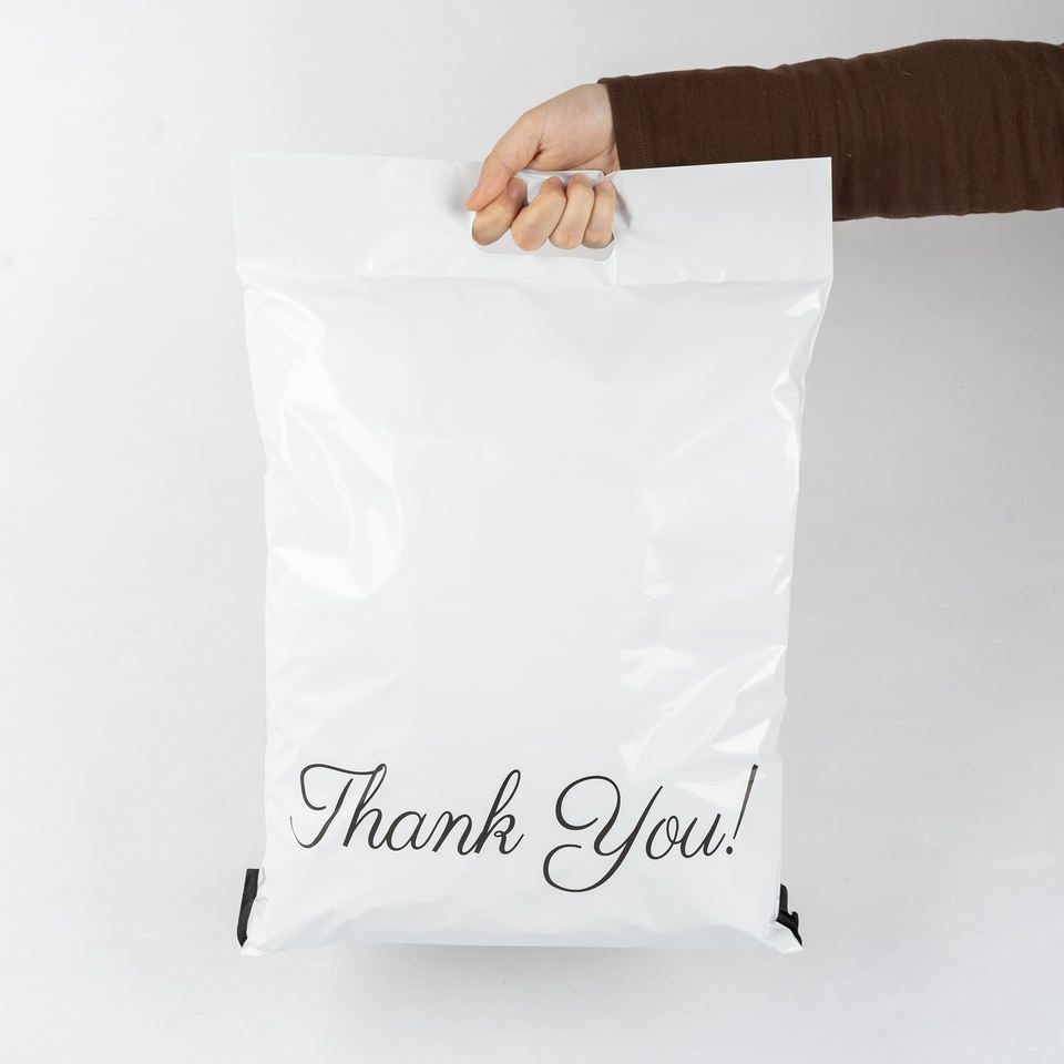 Pacco postale di ringraziamento 10x13 Logo personalizzato stampato corriere spedizione pacco postale borse per posta Poly mailer con maniglia
