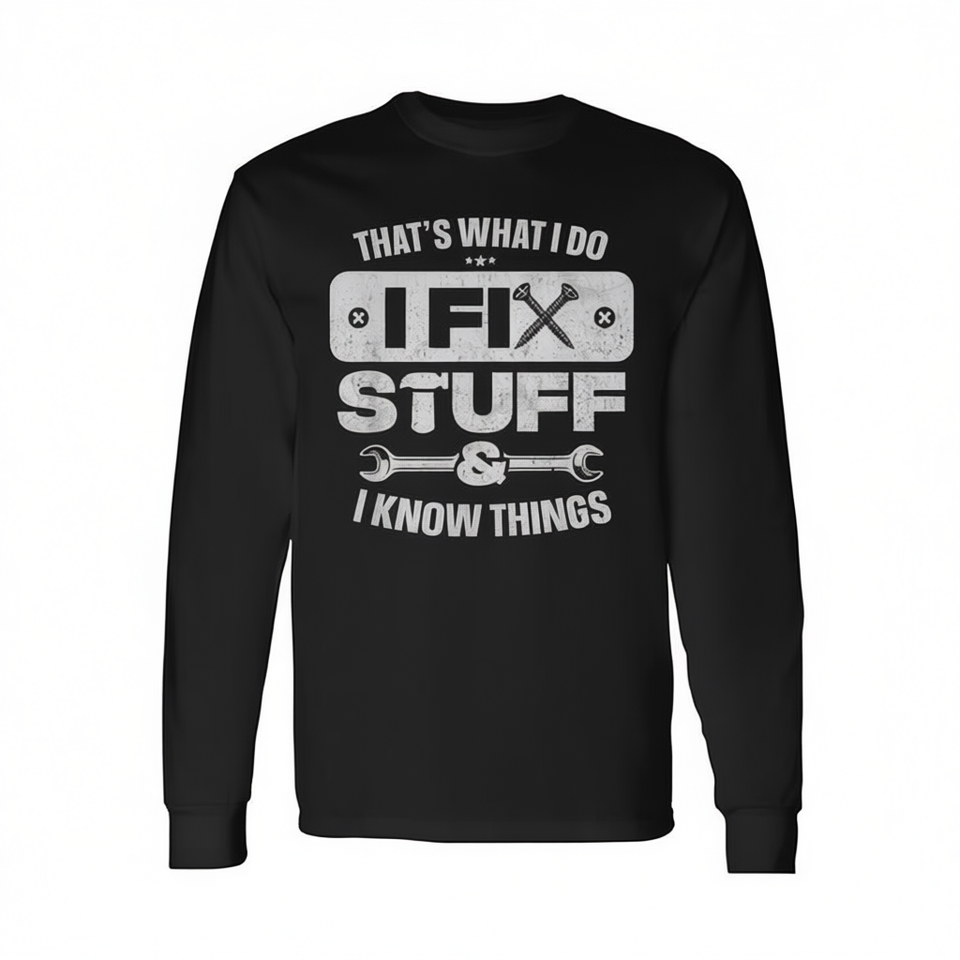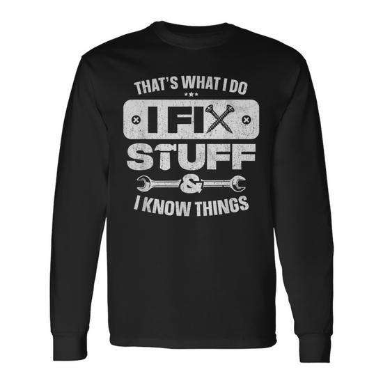 That's What I Do Fix Stuff Know Things Maglietta a maniche lunghe, regalo per la festa del papà