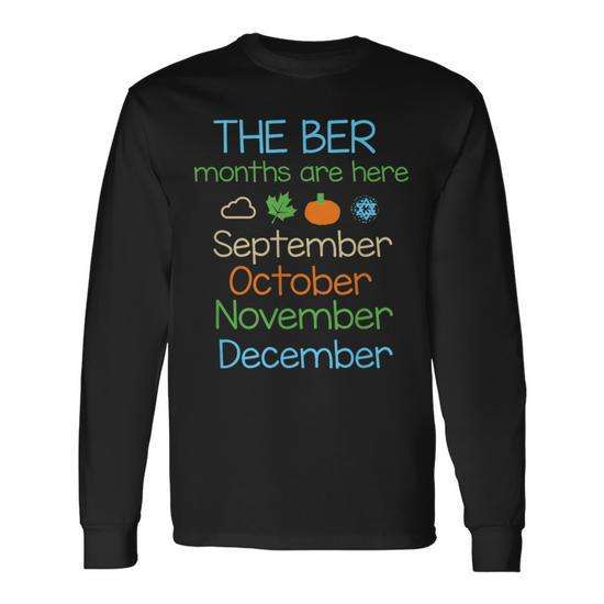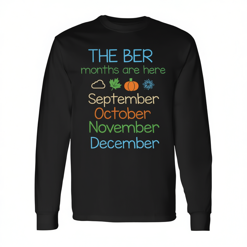 Maglietta a Maniche Lunghe Unisex con Collo Rotondo per Adulti, Promozionale, con Scritta 'The Ber Months Are Here' (Settembre, Ottobre, Novembre, Dicembre)
