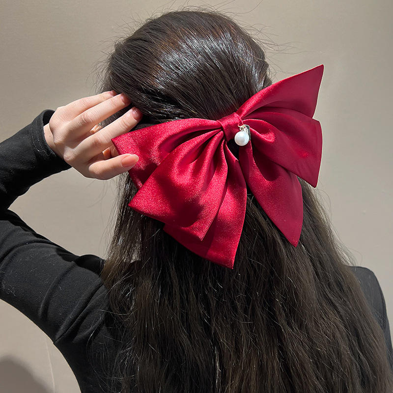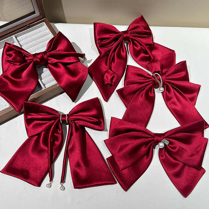 The Best Selling Bow Pearl Hairpin Premium Satin Red Fabric Hair Accessories Japan & Korean Style for Women