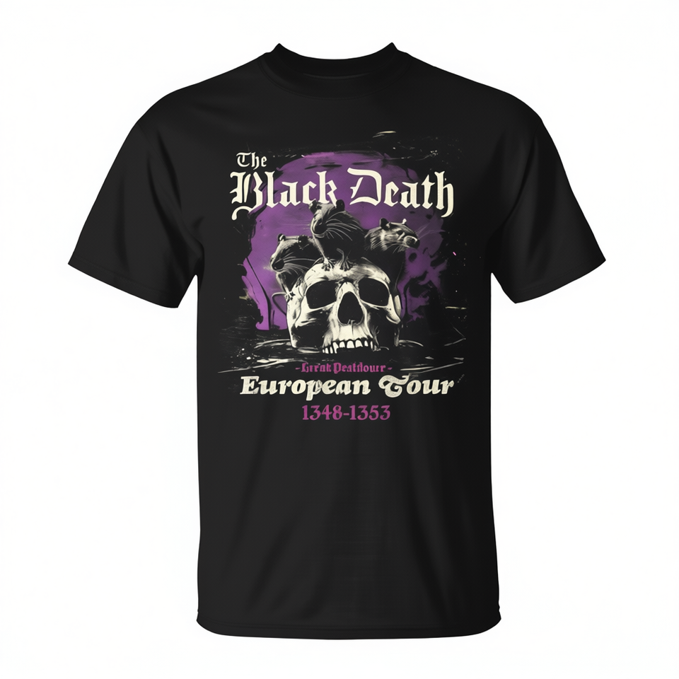 T-shirt The Black Death European Tour Unisex Girocollo Manica Corta Stampa Serigrafica Abbigliamento Promozionale