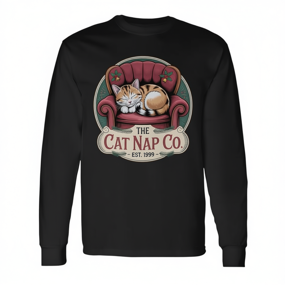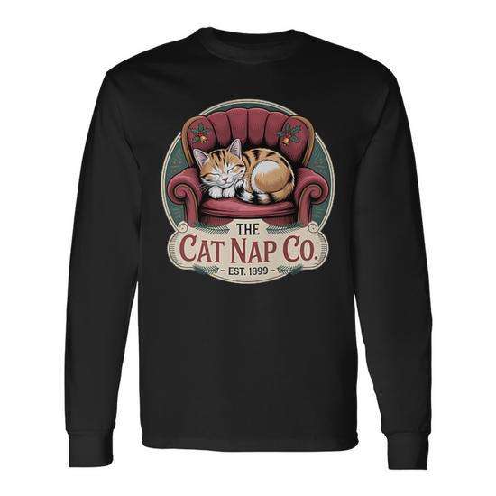 T-shirt vintage a maniche lunghe The Cat Nap Co per le vacanze, girocollo unisex per adulti, stampa digitale