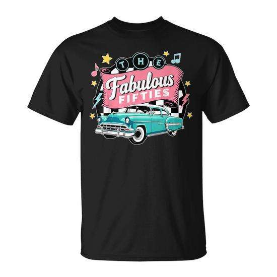 T-shirt The Fabulous Fifties 1950s Car Rockabilly nera da uomo, taglia media