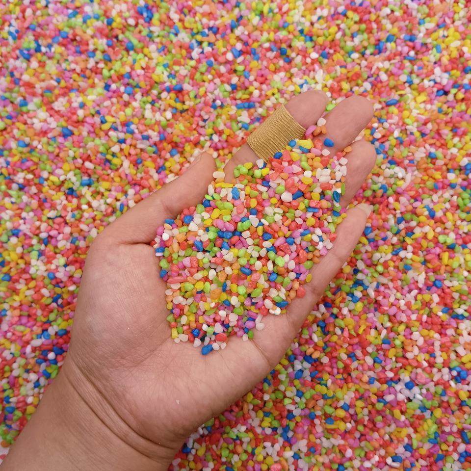 La fabbrica vende pietre di fiume dai colori vivaci e granuli di pietra colorata e cristallo di rocca in pietra di diversi colori