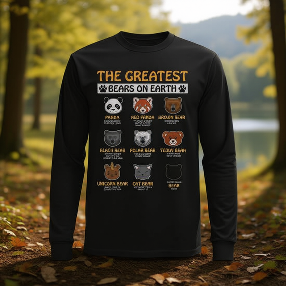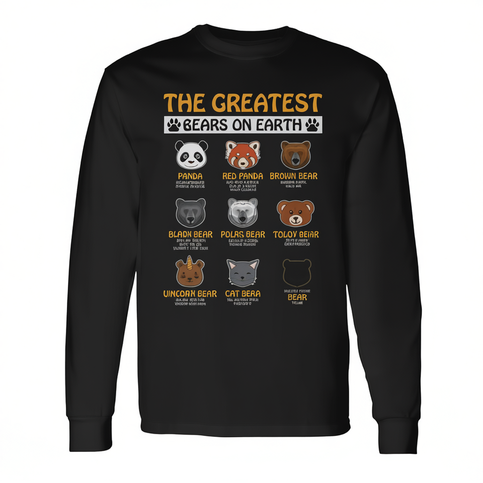 T-shirt a maniche lunghe The Greatest Bears On Earth con design vintage dell'orso, abbigliamento unisex