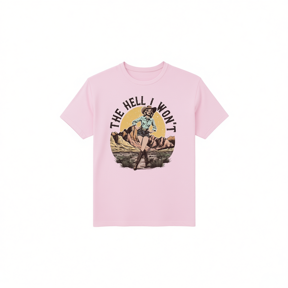 T-shirt da donna The Hell I Won't, girocollo retrò, 100% cotone, stampa casual