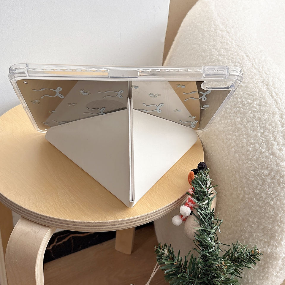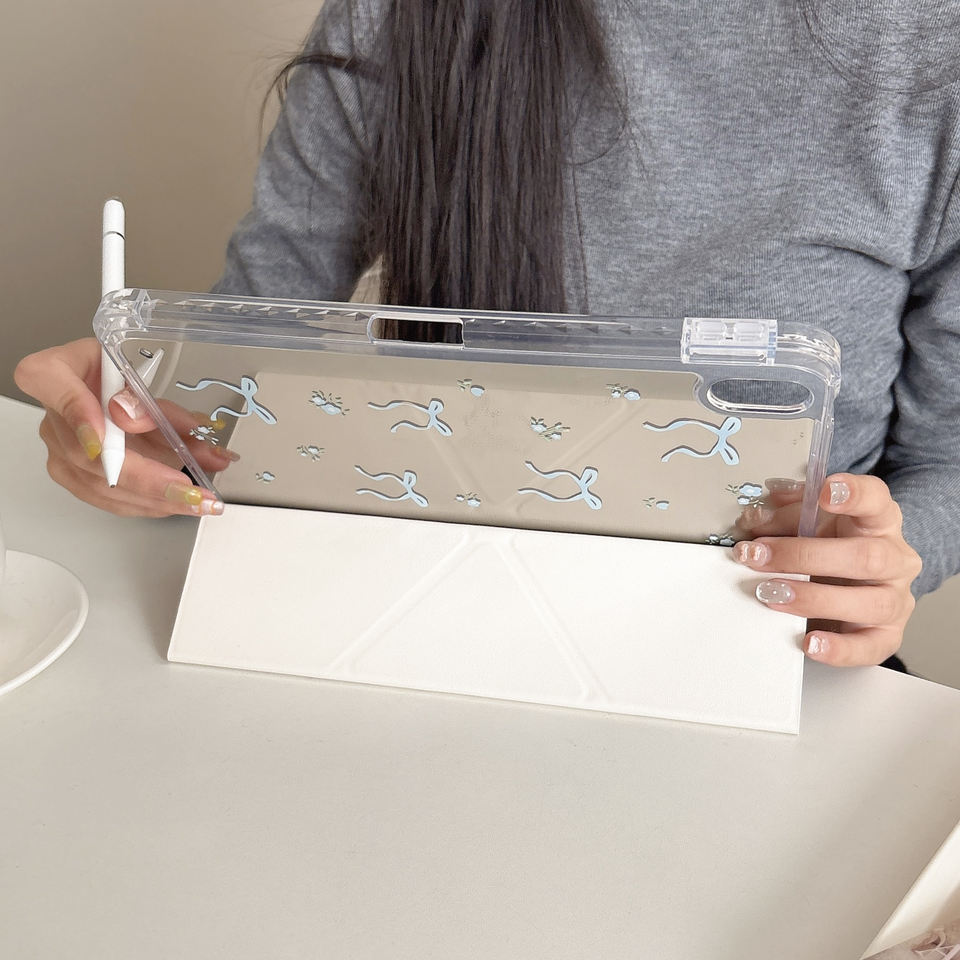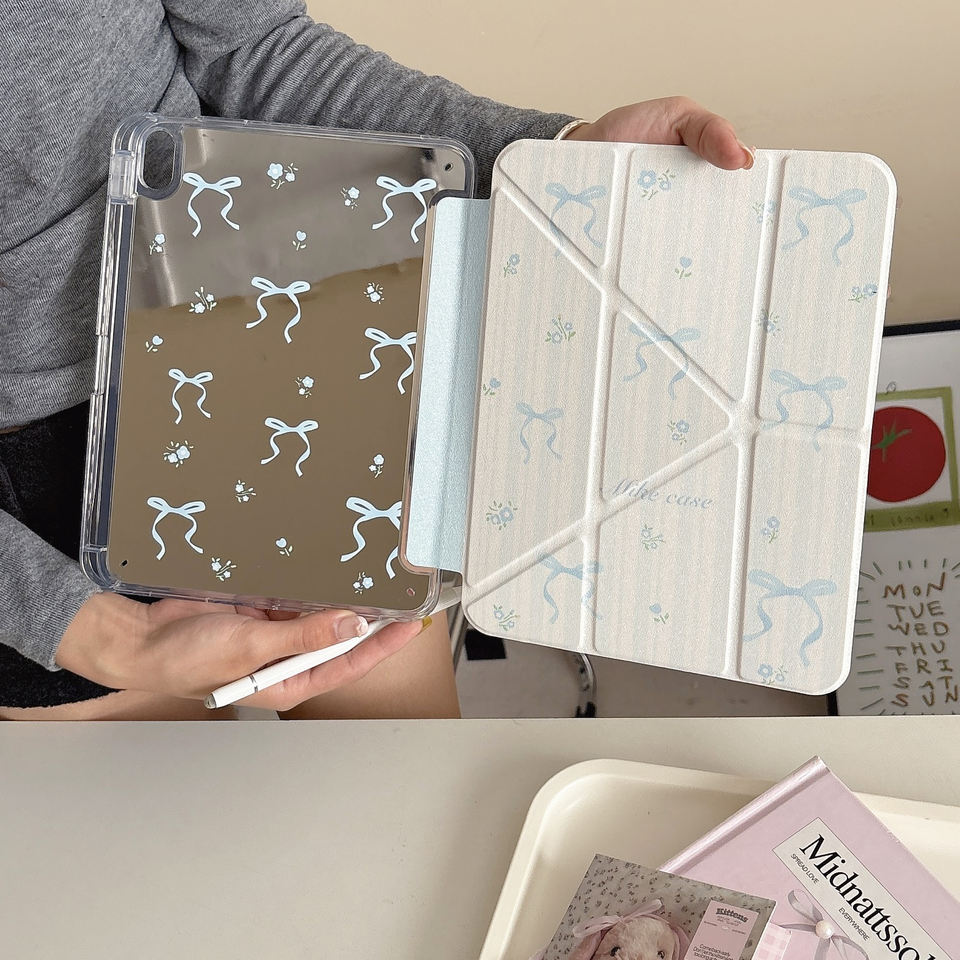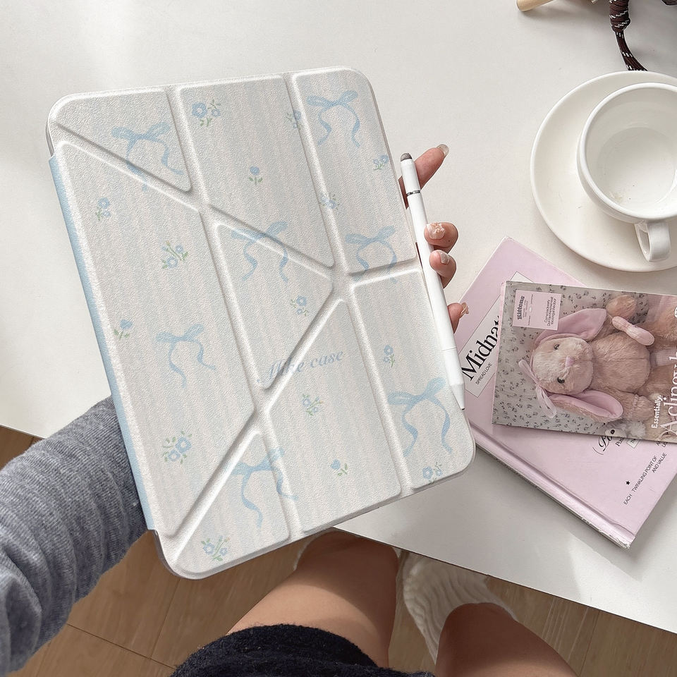 Custodia Protettiva per Tablet iPad 10/11 Generazione con Fiocco a Righe Blu Stile InS, Compatibile con Pro2024 e Slot per Penna Air