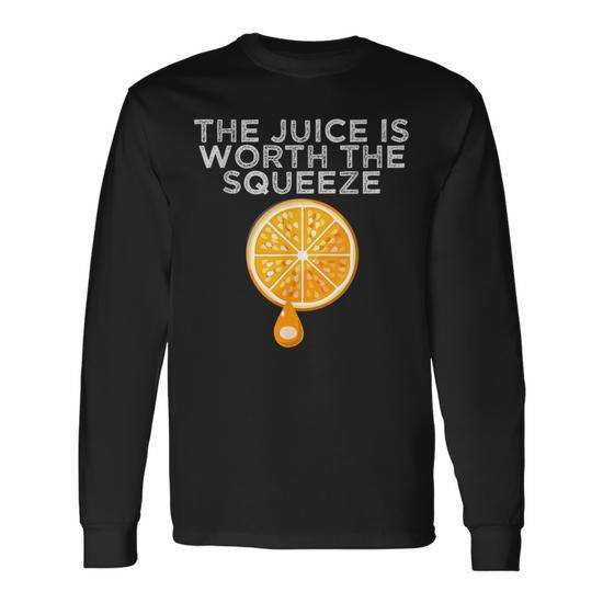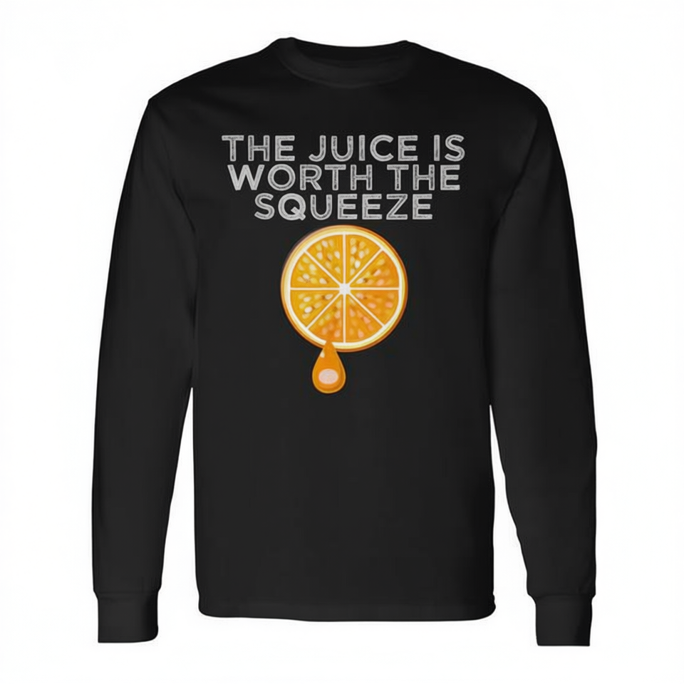 T-Shirt Unisex a Maniche Lunghe con Stampa Digitale 'The Juice Is Worth The Squeeze' Arancione, Abbigliamento Promozionale per Adulti