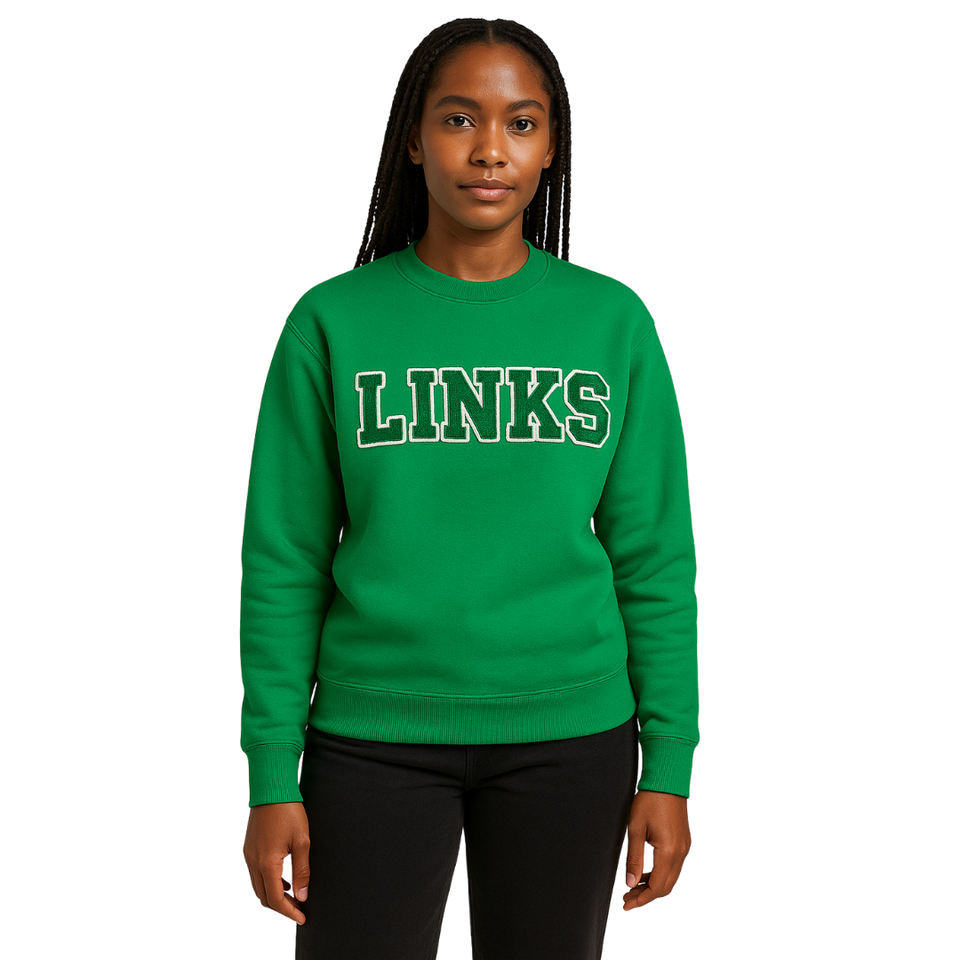 The Links Incorporated Green Cotton Sweatshirt with White Chenille Embroidery Black Civic and Professional Organization Apparel