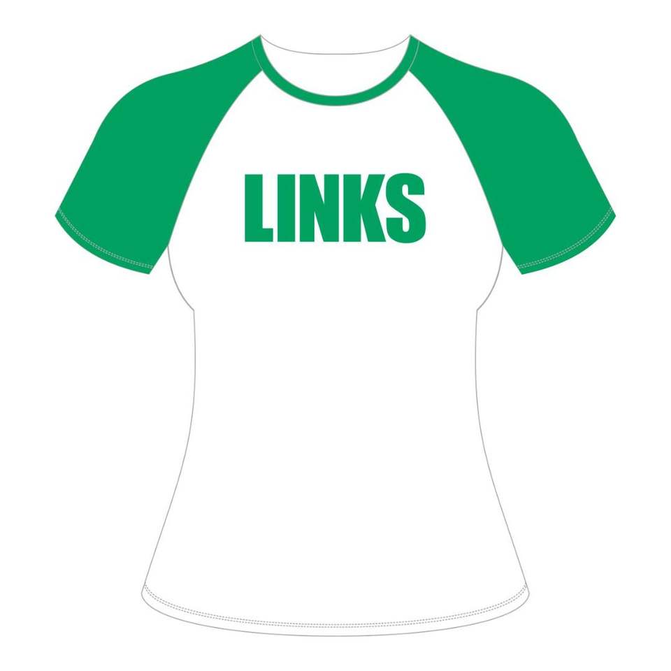 The Links Incorporated White Cotton T Shirt with Green Raglan Sleeves Black Civic and Professional Organization Custom Apparel