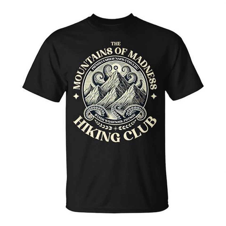 T-shirt The Mountains Of Madness Hiking Club, nera, taglia unisex per adulti