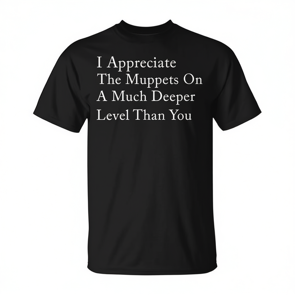 La maglietta Onion: apprezzo i Muppets su un livello molto più profondo rispetto a te. Nera, per adulti, unisex, a maniche corte, girocollo.