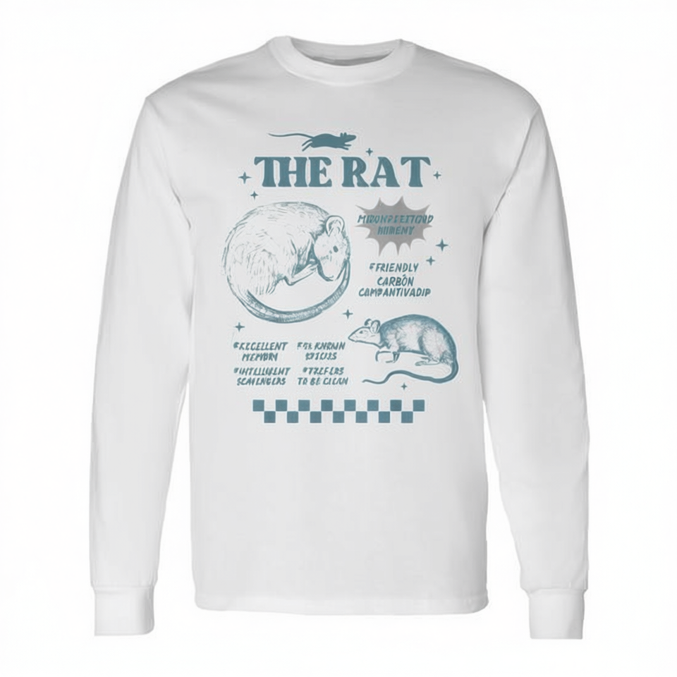 T-shirt a maniche lunghe con stampa retrò di roditori: grafica animale che rappresenta un roditore mal compreso, unisex