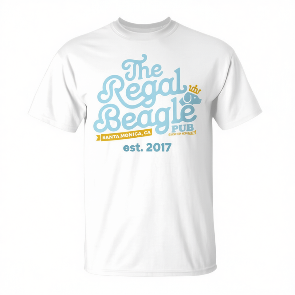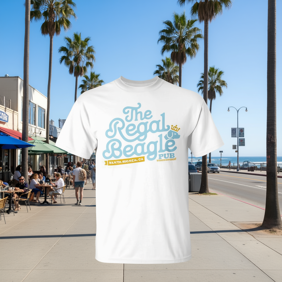 T-Shirt The Regal Beagle Pub Unisex per Adulti, Manica Corta, Girocollo, Design con Logo Santa Monica Ca, Stampa Serigrafica Promozionale