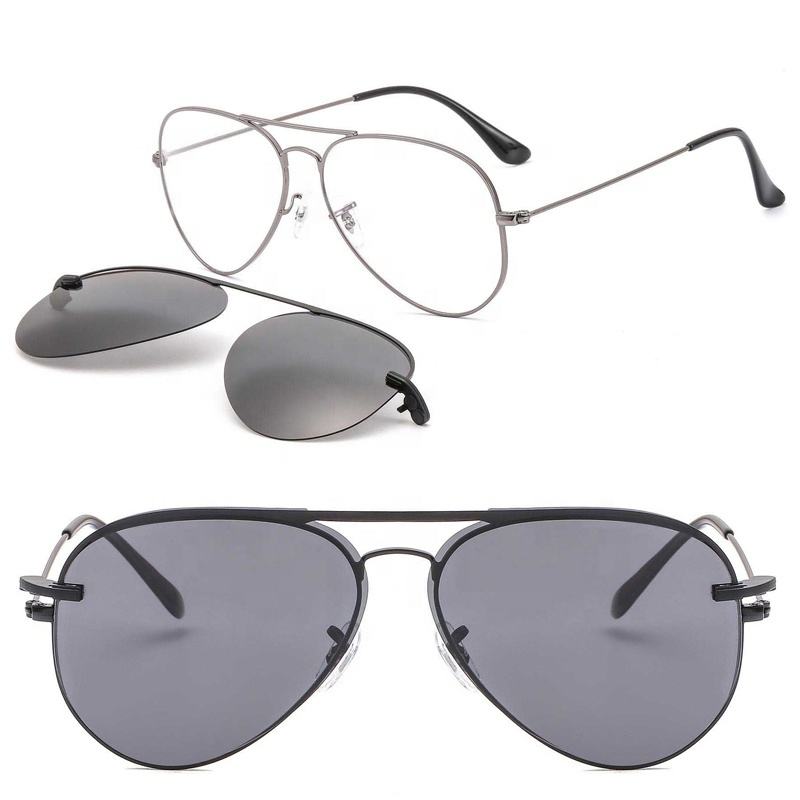 La slim aviation occhiali in metallo telaio con interno magnetico clip on polarizzati sunglens pilota fresco grande formato occhiali da sole ottici
