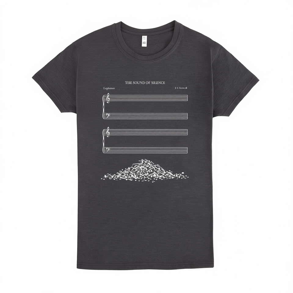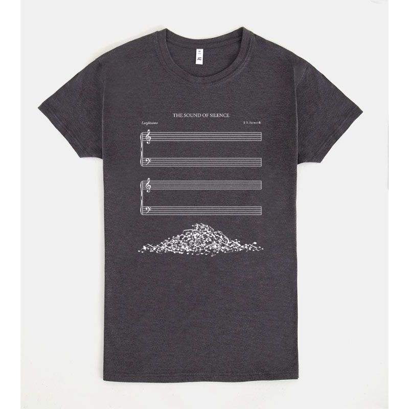 T-shirt The Sound Of Silence, design con note musicali, colore grigio scuro, vestibilità unisex