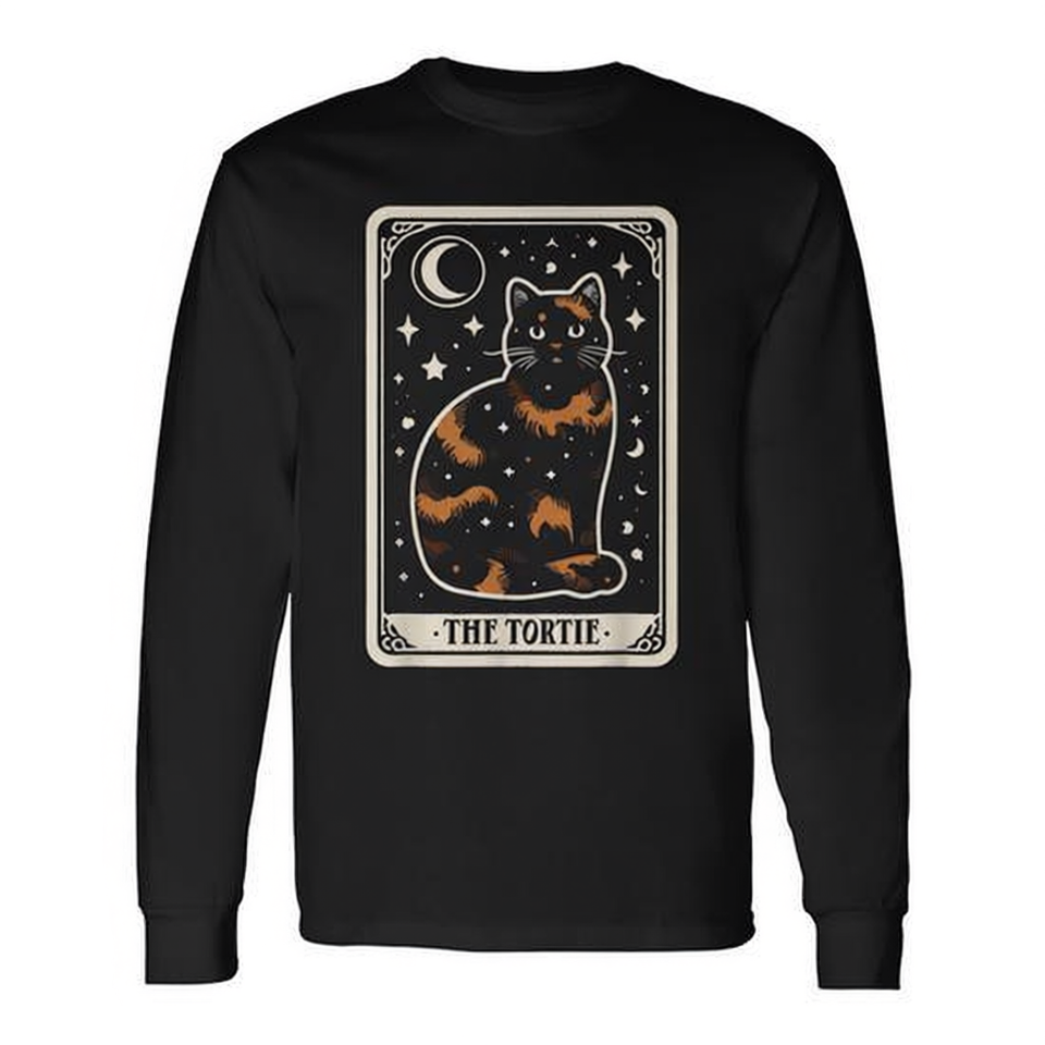 T-shirt a maniche lunghe The Tortie Tortoiseshell Cat nera unisex per adulti taglia M L XL XXL