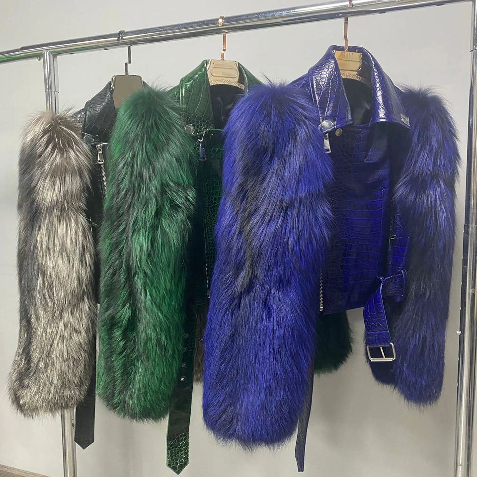 Thick Elegant Winter Women Leather Real Fox Fur Coat Jacket With Fur for Ladies