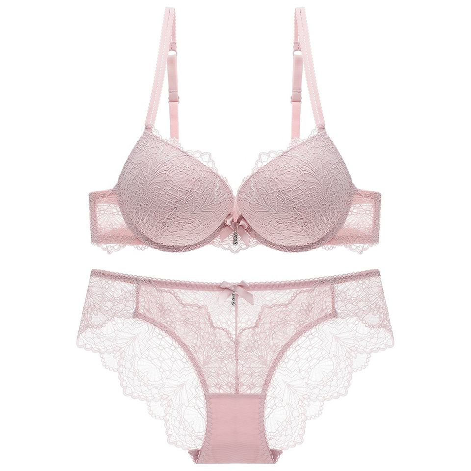 Di spessore A Forma di con ferretto Brasier Delle Signore Del Reggiseno Panty Set Push Up per Le Donne Delle Ragazze Del Merletto Netto Sexy Del Reggiseno