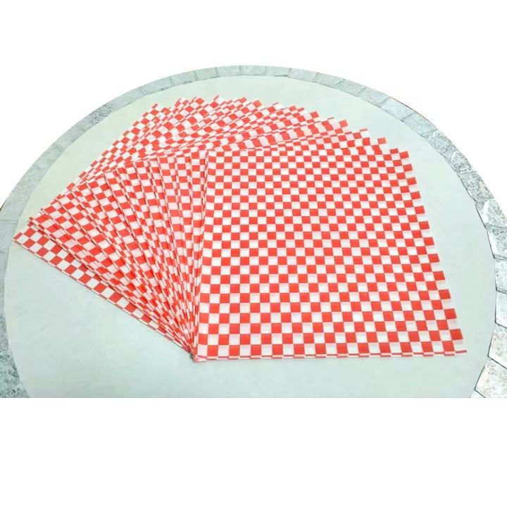 Carta addensata resistente all'olio e resistente al calore per imballaggi di hamburger colorata a scacchiera plaid da forno carta a prova di olio fritta
