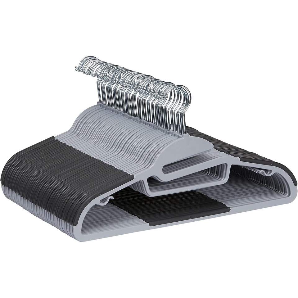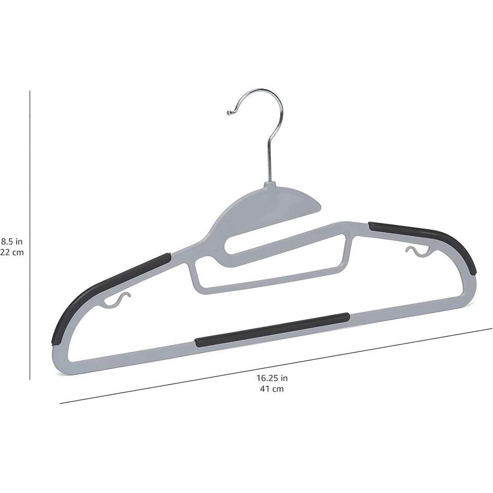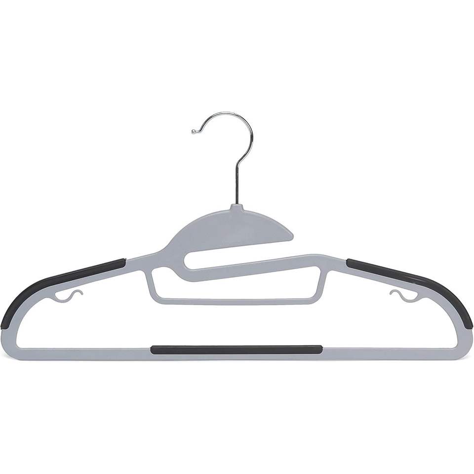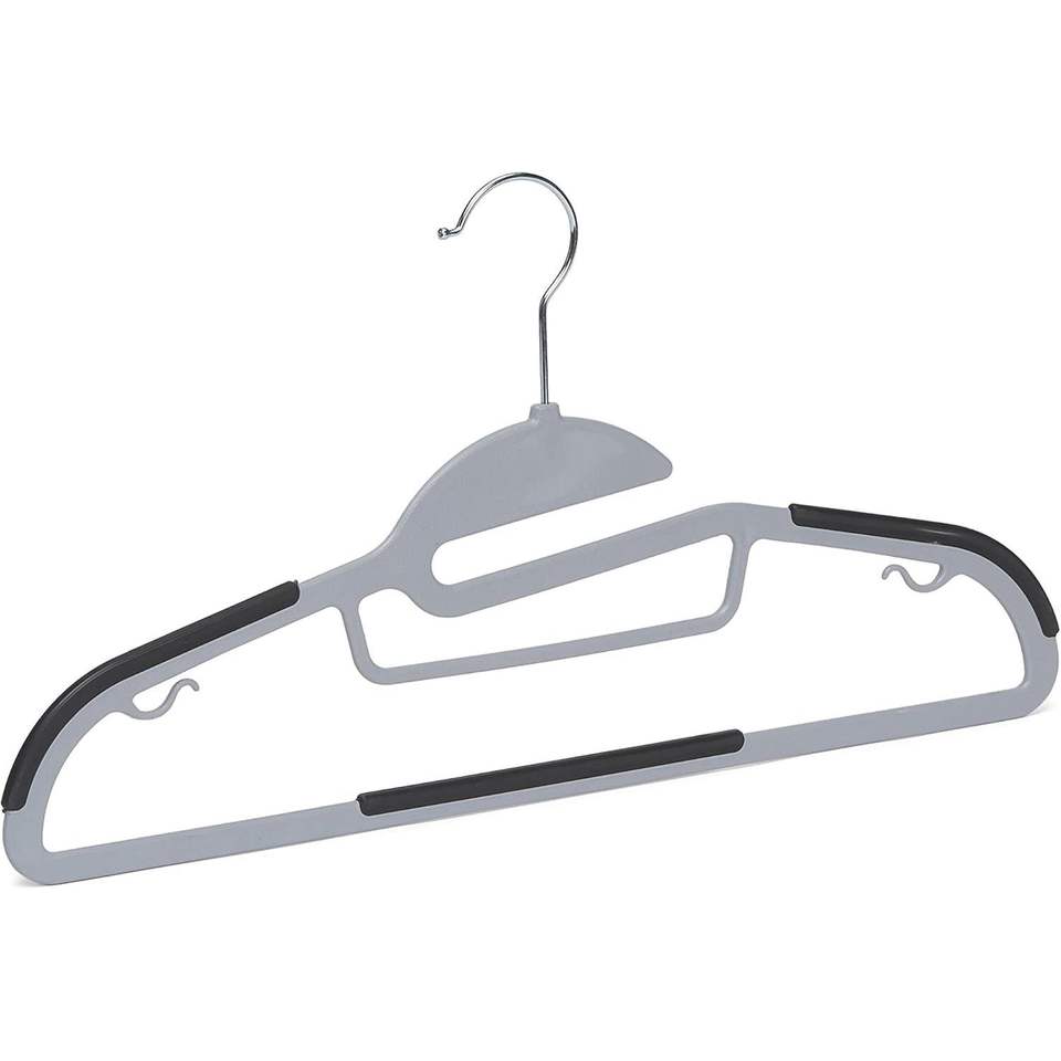 Appendiabiti in plastica sottile grigio antiscivolo con rivestimento in gomma, salvaspazio, con gancio girevole a 360 gradi, confezione da 50
