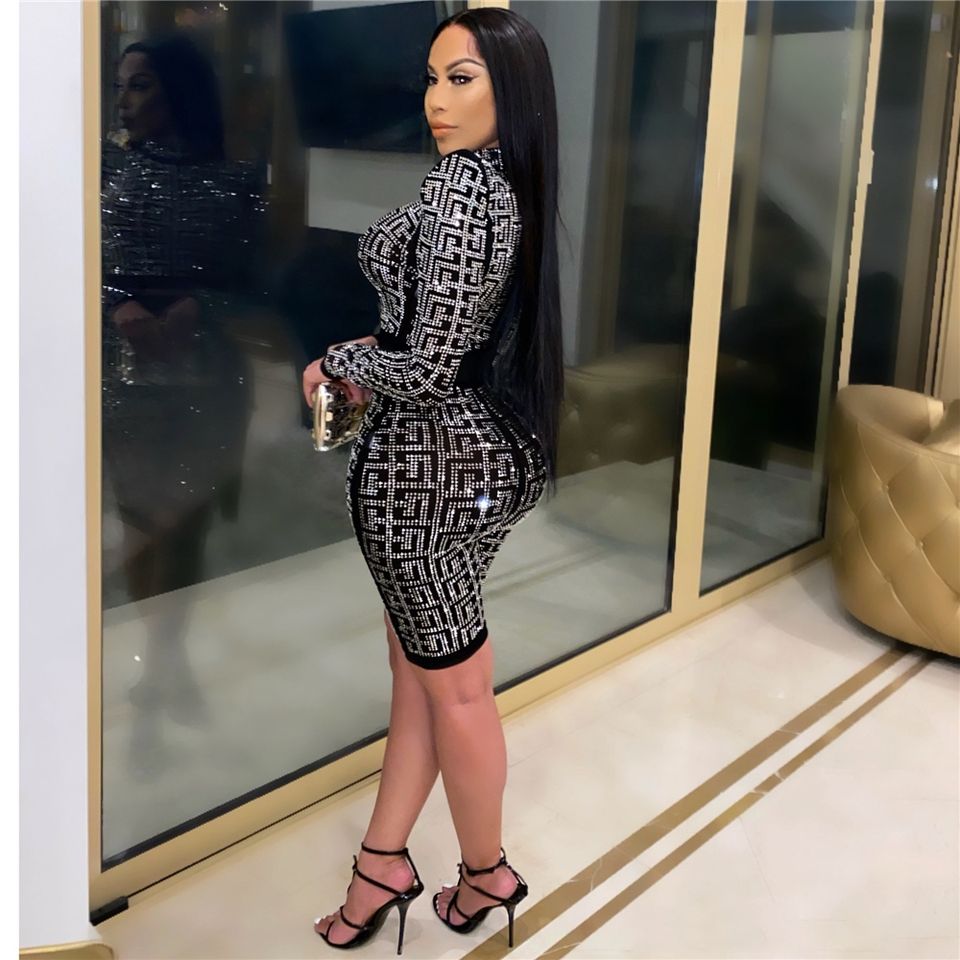 Think 2023 Retro Soft Elastic Dress Sexy Club Women Wedding senza maniche pacchetto elastico Hip Skinny paillettes Glitter Midi Dress