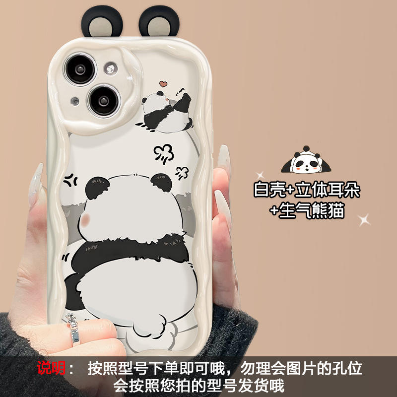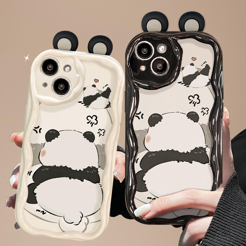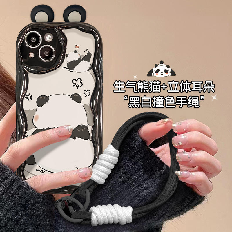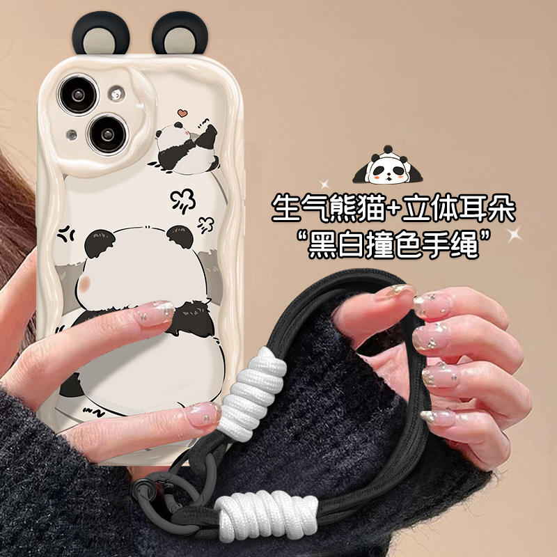Cover per Cellulare in TPU con Cinturino Stile Orecchie di Panda in Terza Dimensione per iPhone 6 7 8 Plus X Xr XS 11 12 13 14 15 16 Pro Max