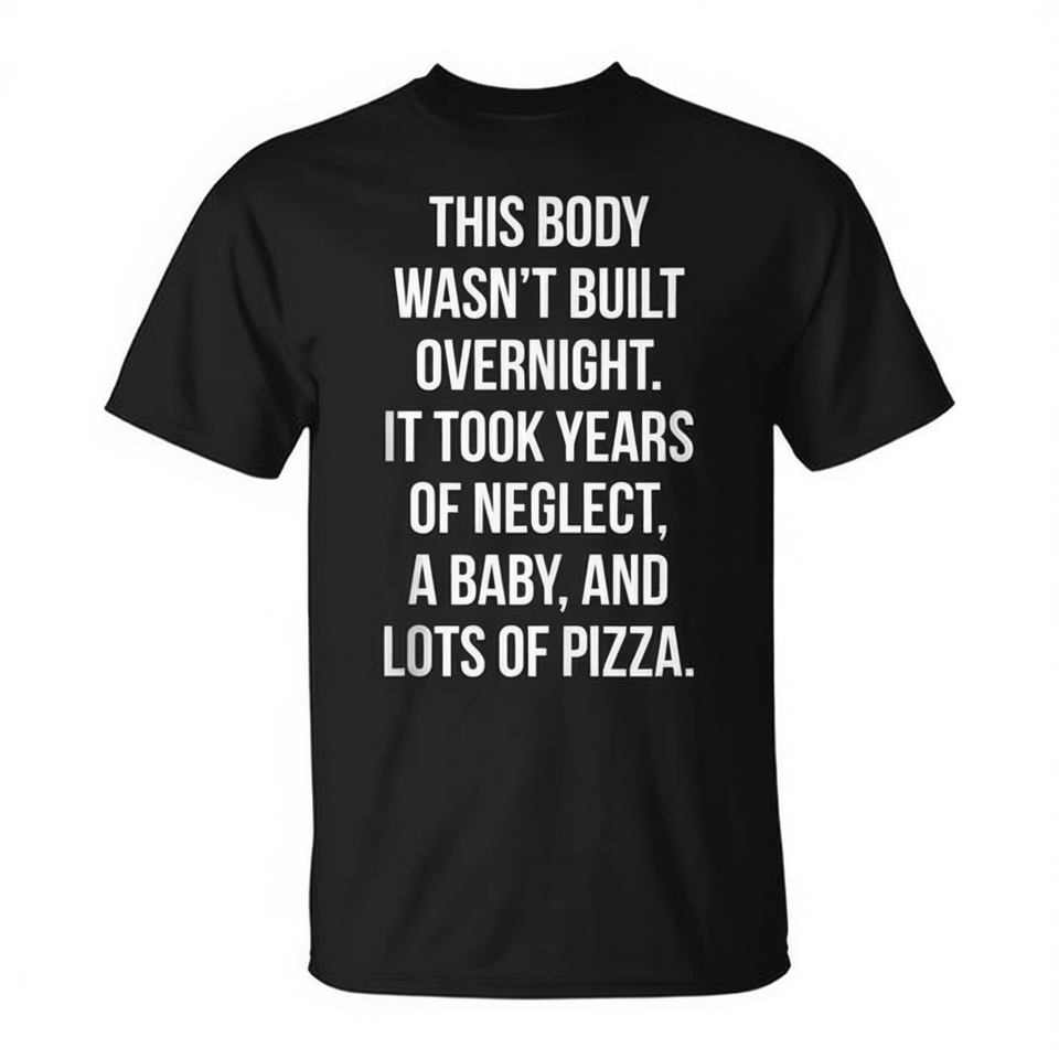 T-Shirt 'This Body Wasn't Built Overnight' Manica Corta Girocollo Unisex per Adulti, per Attività Promozionali, Stampa Serigrafica