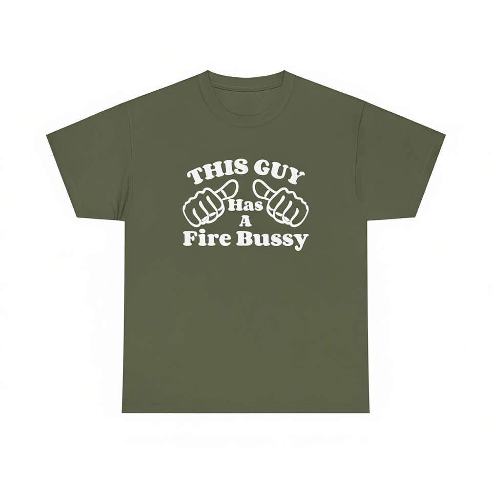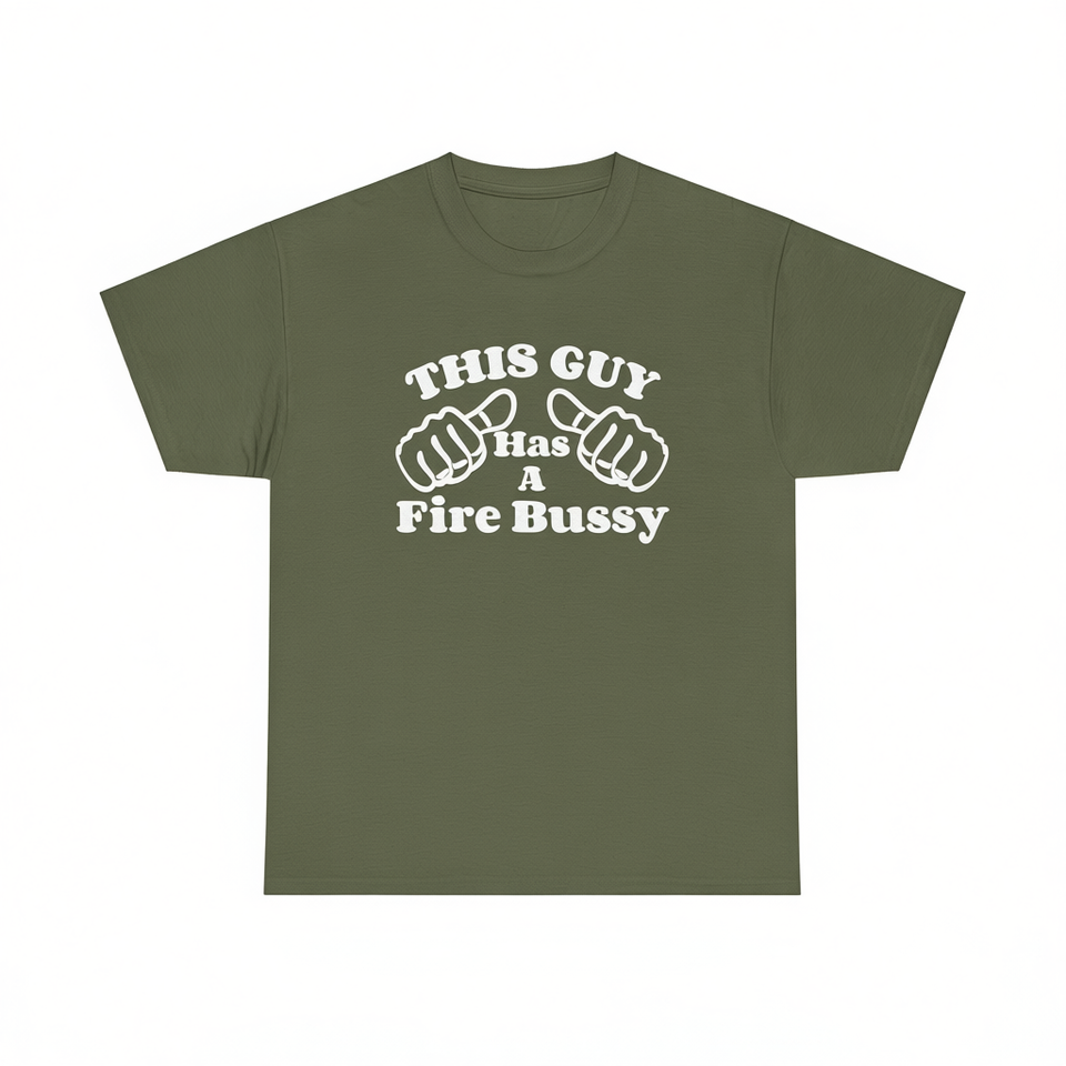 T-shirt This Guy Has A Fire Bussy, maglietta unisex a girocollo a maniche corte, divertente maglietta con meme