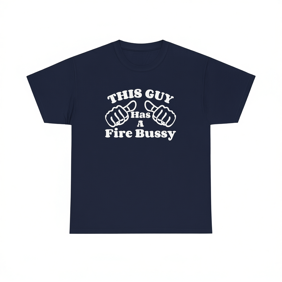T-shirt divertente con meme 'This Guy Has A Fire Bussy', maglietta scherzosa, regalo scherzoso, abbigliamento promozionale con umorismo inadatto