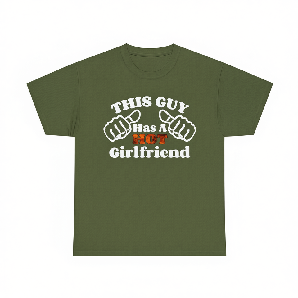 Maglietta con stampa 'This Guy Has A Hot Girlfriend', regalo divertente per anniversario, per fidanzato, San Valentino