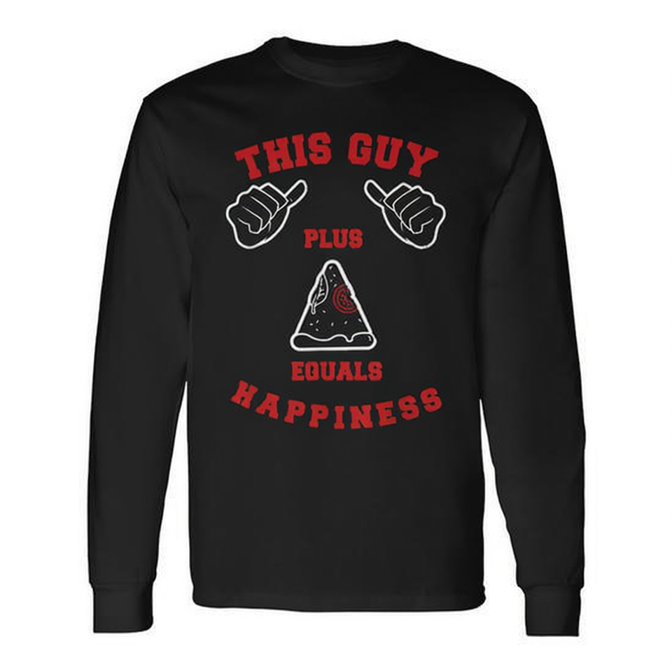 T-shirt promozionale a maniche lunghe in stile italiano con stampa 'This Guy Pizza Comfort Food Happiness'