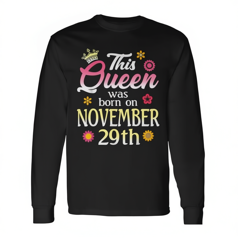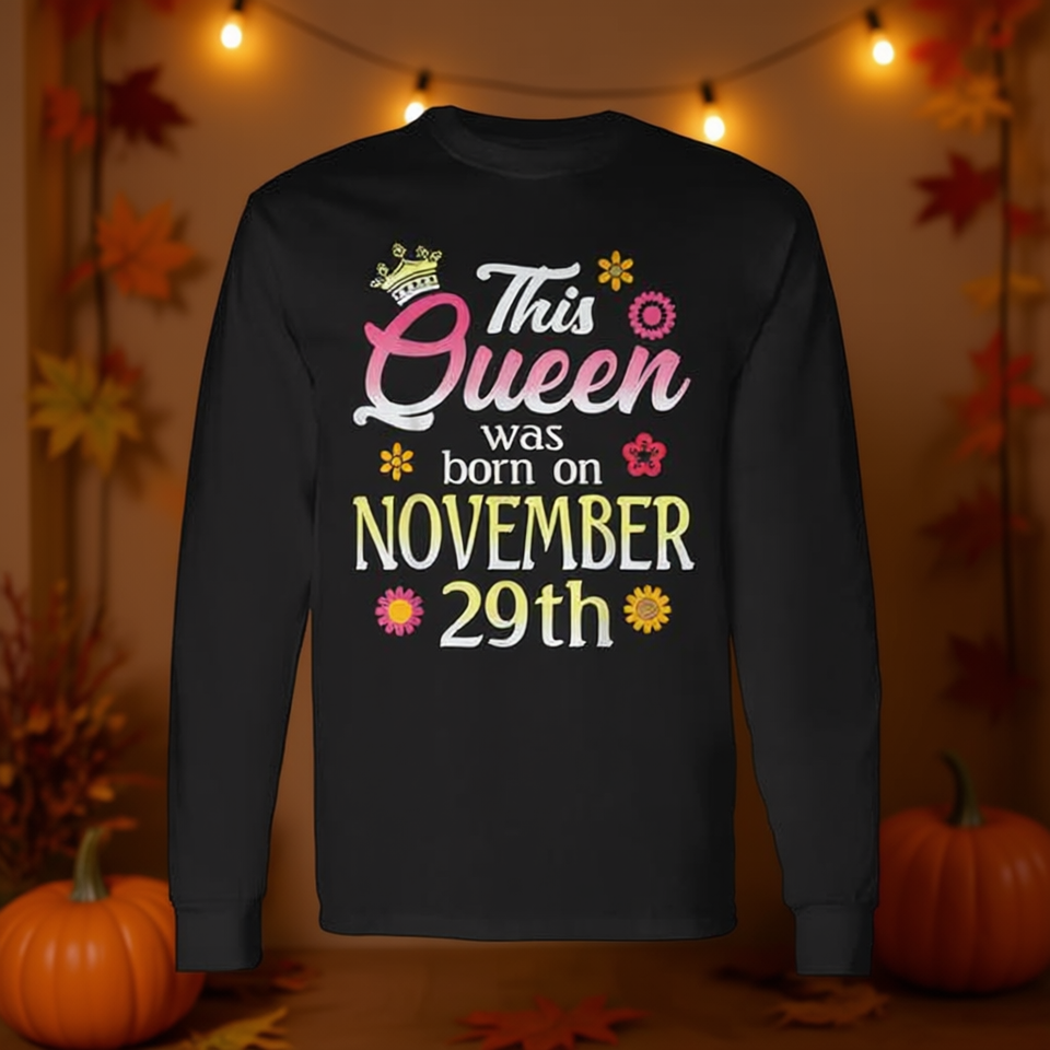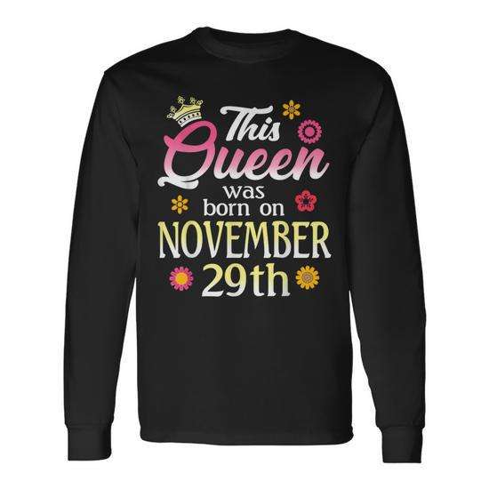 Questa T-shirt a maniche lunghe con fiore del 29 novembre stampato sul titolo 'Birthday Flower' è ispirata alla regina.