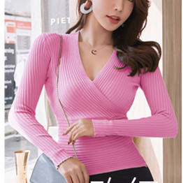 This Year's Super Popular Women's Threaded Long-sleeved Sweater, Low-cut Cross Deep V, Sexy and Gentle Coexist