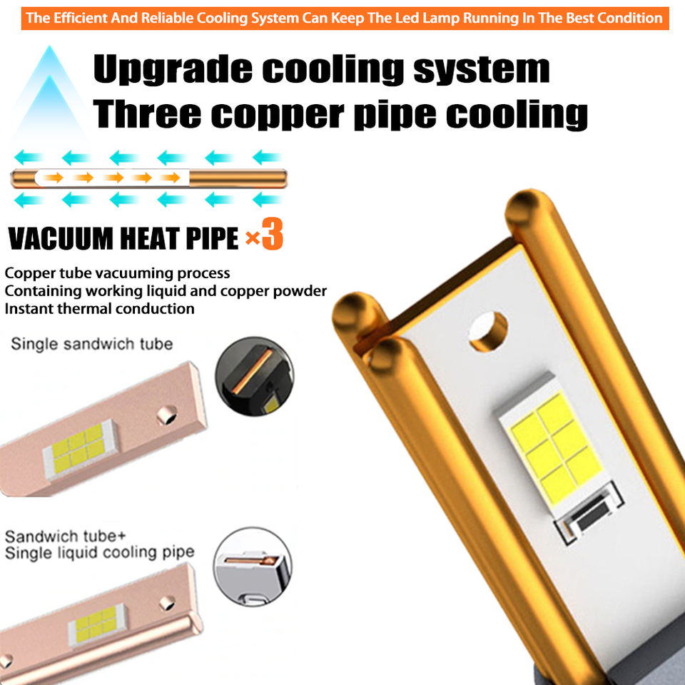 Three Copper Tube 170w 55000LM Led Faros H7 H11 Light Car Bulb Bombillos 9005 9006 H1 Canbus Luces H4 T10 Led Headlights for Car