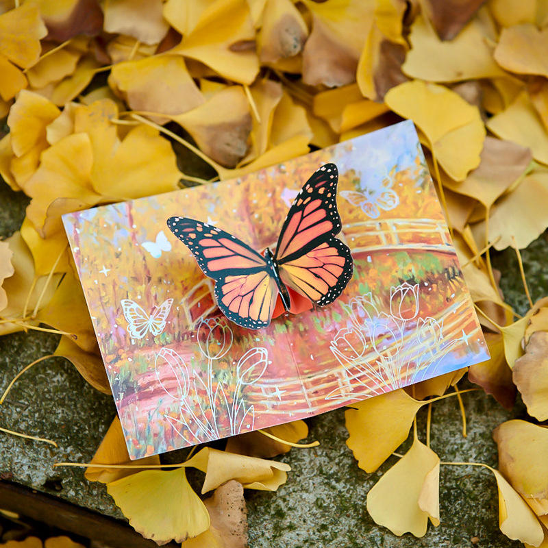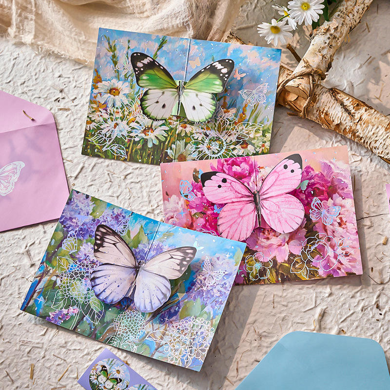 Set di Buste per Biglietti d'Auguri Tridimensionali Serie Sogno Strano con Farfalle e Campane, Lamina d'Oro, Stile Retrò Commemorativo