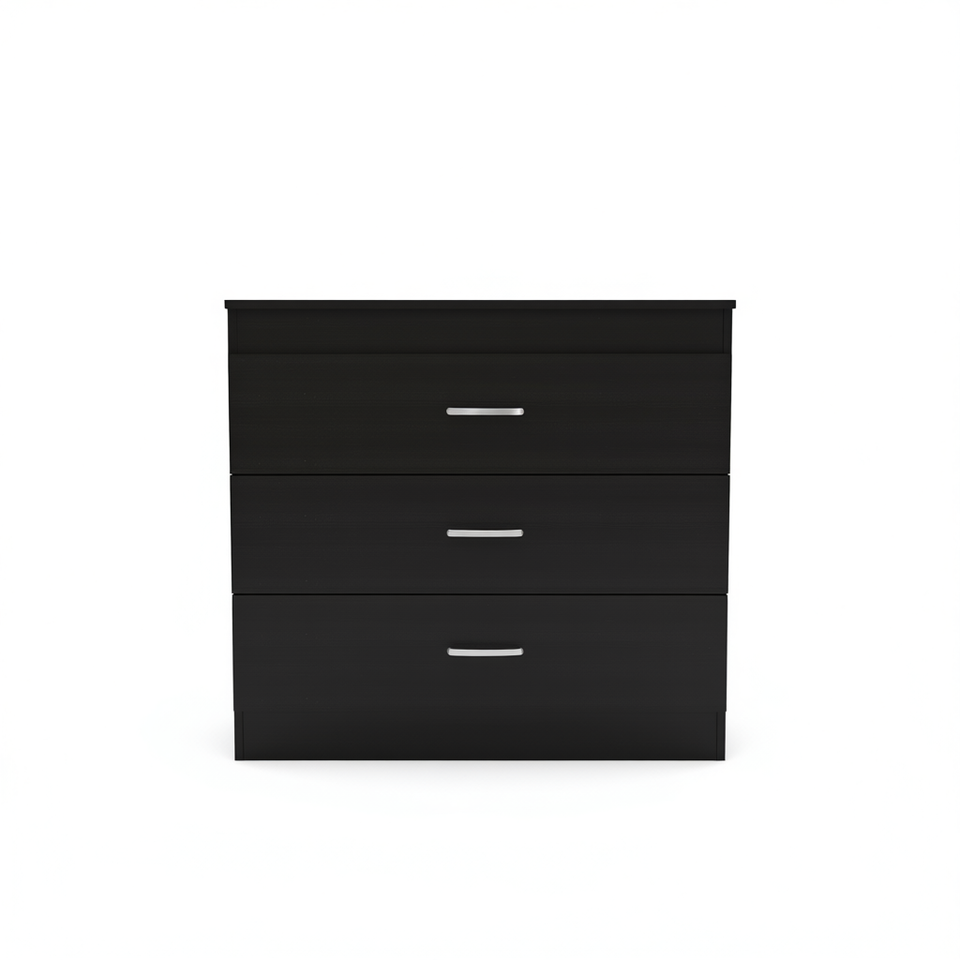 Lial Three Drawer Dresser Black Wengue Finish Metal Hardware Modern Bedroom Furniture