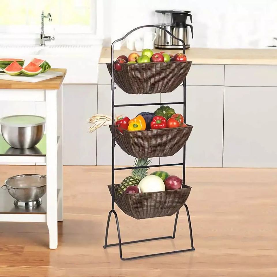 Three-Layer Detachable Wicker Storage Rack Floor-standing Furniture Basket for Bedroom Living Room Display for Home Organization
