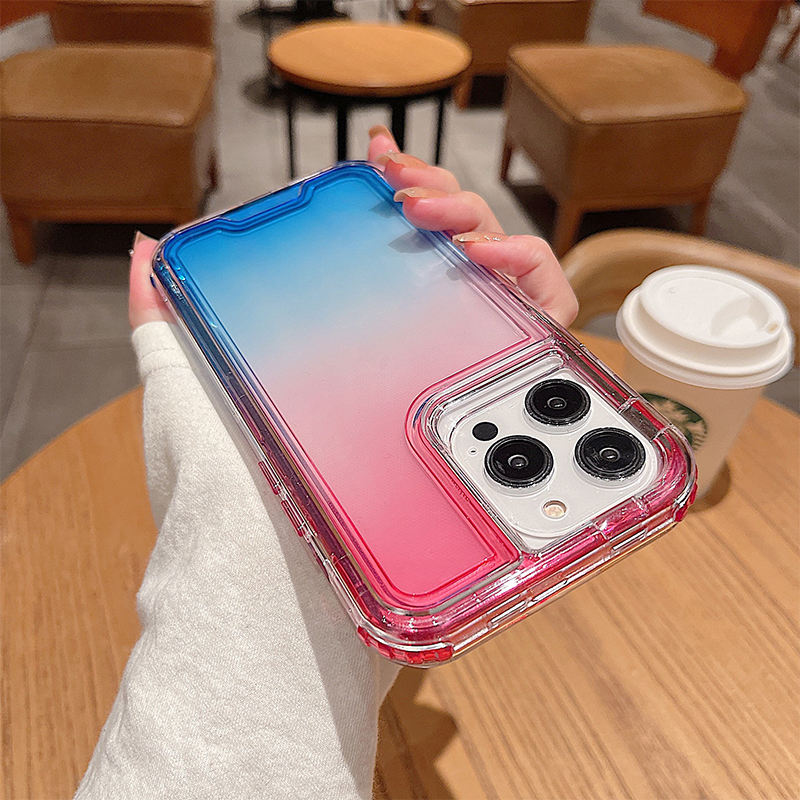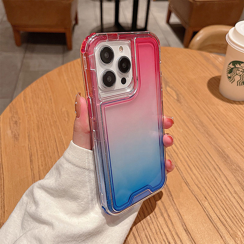 Custodia Protettiva di Lusso per Telefono a Tre Strati in TPU e PC, Impermeabile, Trasparente, con Gradiente Arcobaleno, Antiurto
