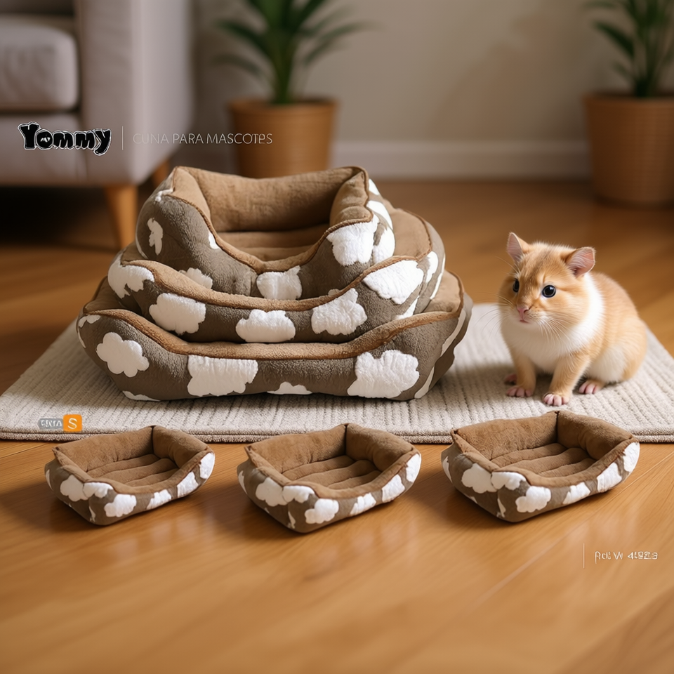 Three-Piece Brown Nest Set Cloud Jacquard Cotton Velvet and Arctic Velvet Square Pet Beds for Small Animals
