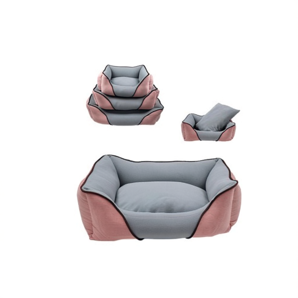Three-Piece Corduroy and Fleece Dog House Set Pink Pet Beds