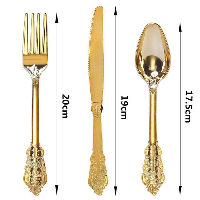 Set di posate in tre pezzi placcato oro placcato monouso in plastica in stile occidentale con forchetta per bistecca cucchiaio per cena all'estero