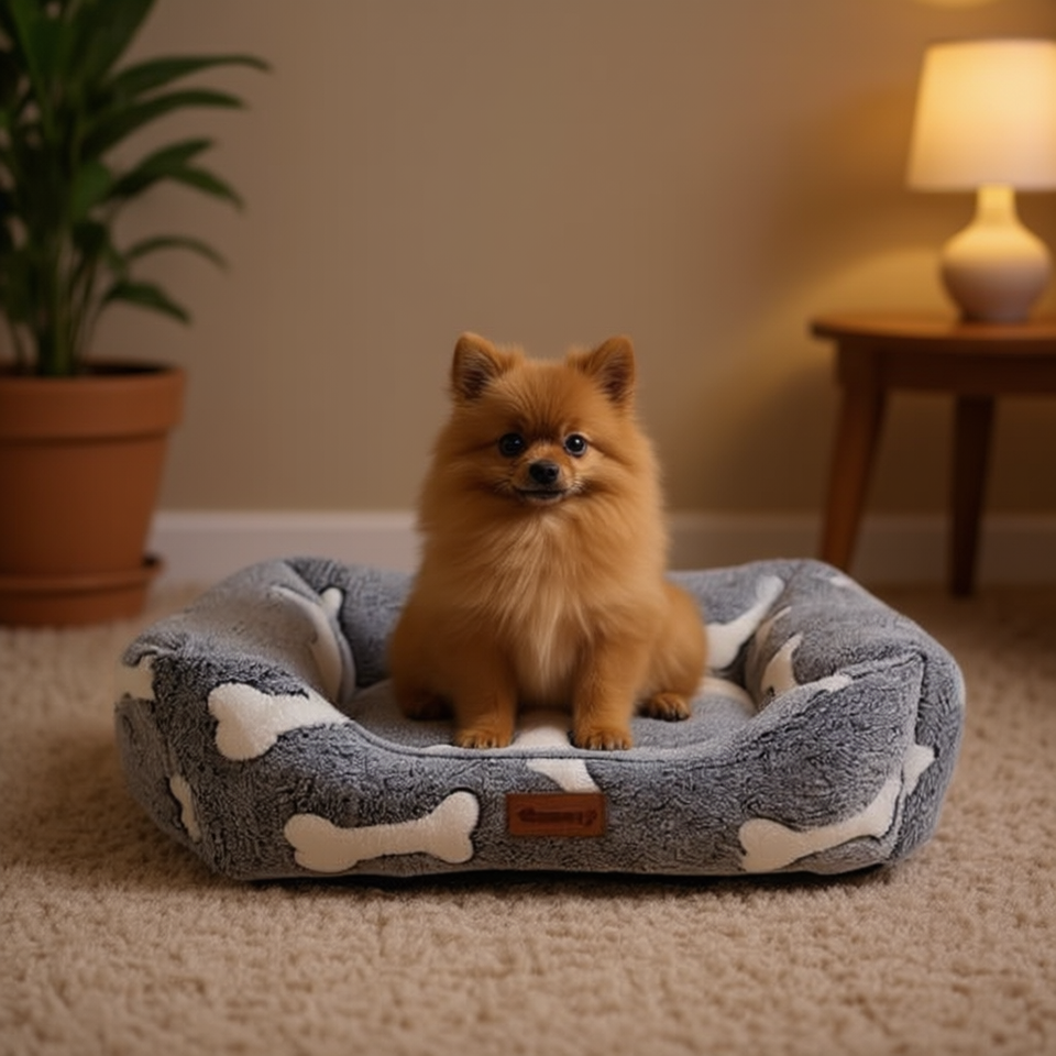 Three-Piece Gray Bone Flannel Dog House Set for Pet Beds