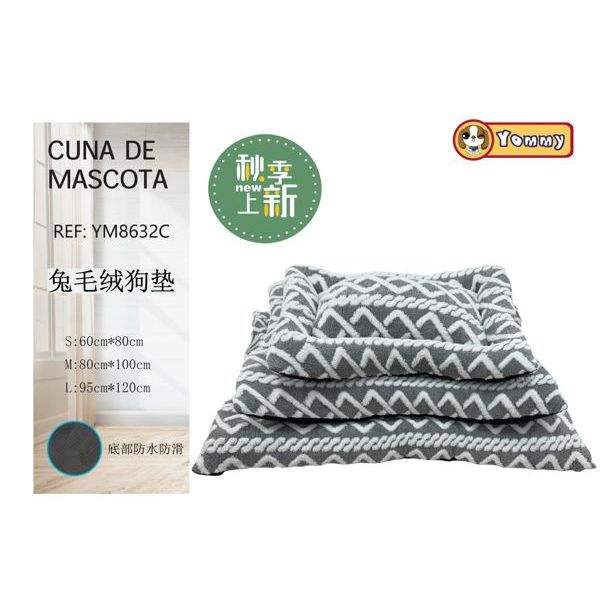 Set di Tre Pezzi per Cuccia per Cani e Conigli, Rettangolare, in Finta Pelliccia Grigia, Impermeabile, Antiscivolo, Rimovibile e Lavabile