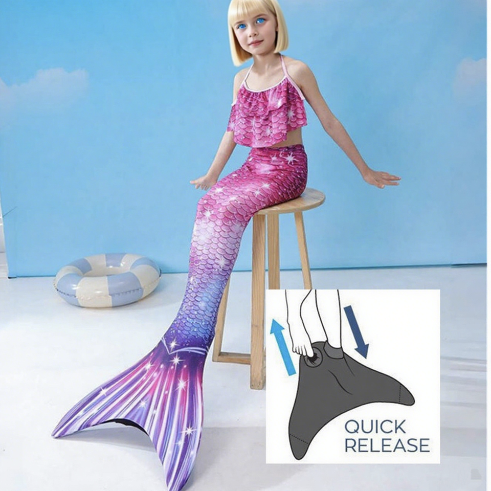 Three-Piece Kids Swimsuit for Girls Fish Tail Mermaid Performance Bikini Print Style Swimwear