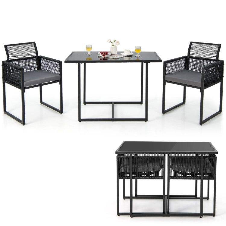 Set da Pranzo da Esterno in Tre Pezzi con Comodo Schienale Pieghevole e Cuscini per Seduta, Ideale per l'Intrattenimento in Giardino