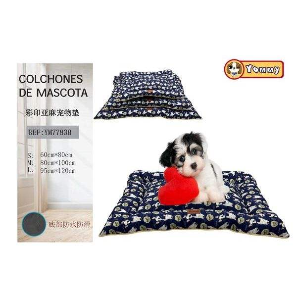 Three-Piece Printed Linen Dog Pad Set with Blue Background Dog Head Pet Beds