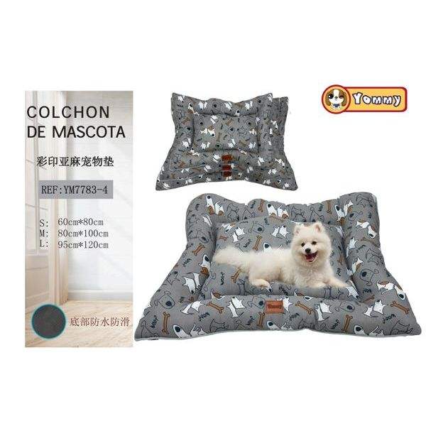 Three-Piece Rectangle Cartoon Printed Linen Dog Bed Set with Gray Bottom Waterproof & Anti-Slip for Dogs