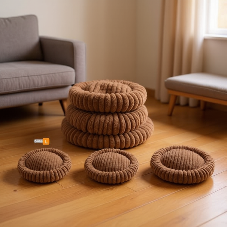 Three-Piece Set of Coarse Brown Rabbit Hair Round Nest for Pet Beds